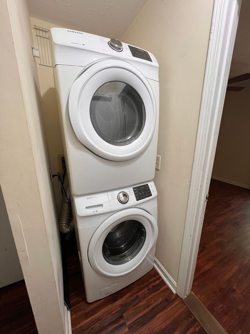 Located just off E Glenn, this 2 bedroom, 2.5 bath townhome offers a unique living space with a downstairs bedroom that opens into a small fenced in backyard, a carpeted loft area, and spacious upstairs bedroom. The open floor plan downstairs offers a spacious living space with fireplace, and kitchen with eat in bar. Across from the kitchen is another half bath for guests. This property has 2 full bathrooms, as well as a stackable washer/dryer.