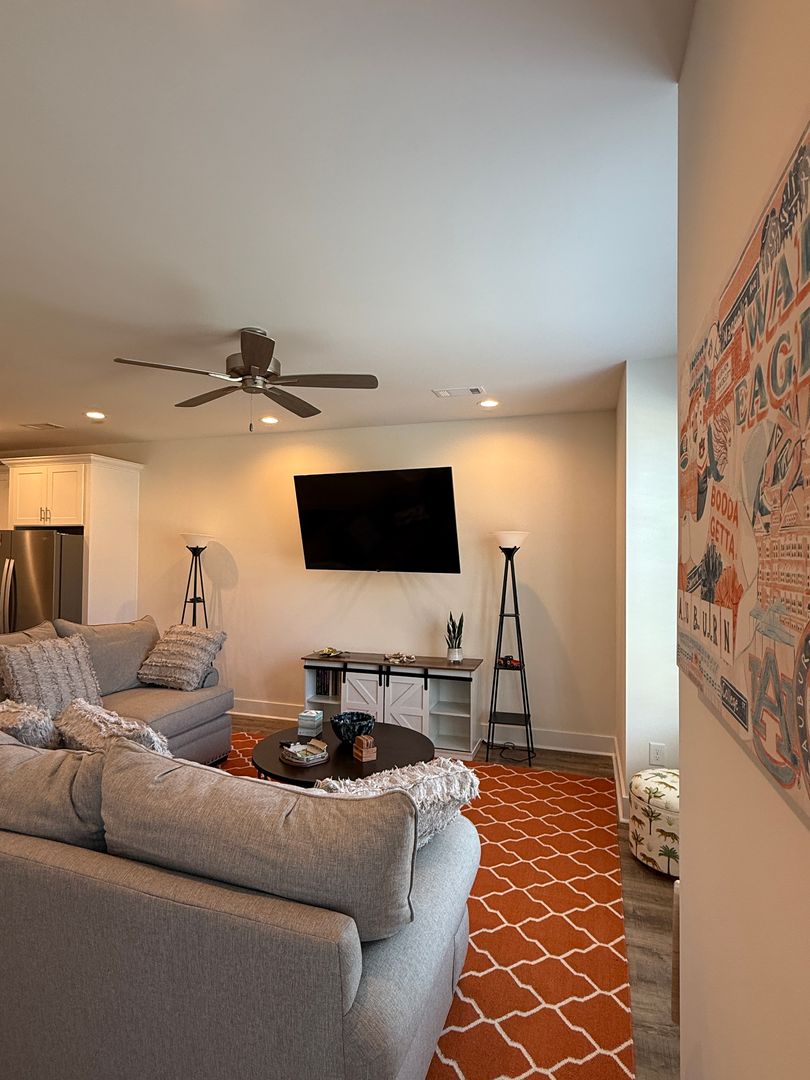 Designer Townhome! This unit is practically brand new, and offers upscale finishes and a great location just off N College Street. Short distance to Auburn University campus and downtown, and very close to HWY 280. Enter into the living room that leads to the open concept kitchen and dining area. The kitchen features a large center island and pantry. Across the hall from the kitchen is the half bathroom. Down the hall you will find a hall closet, access to the primary suite and laundry room.The primary suite features a spacious bedroom and en suite bathroom with a large single vanity and spacious walk-in closet. Upstairs includes two guest bedrooms and a full bathroom. Unit comes furnished.
