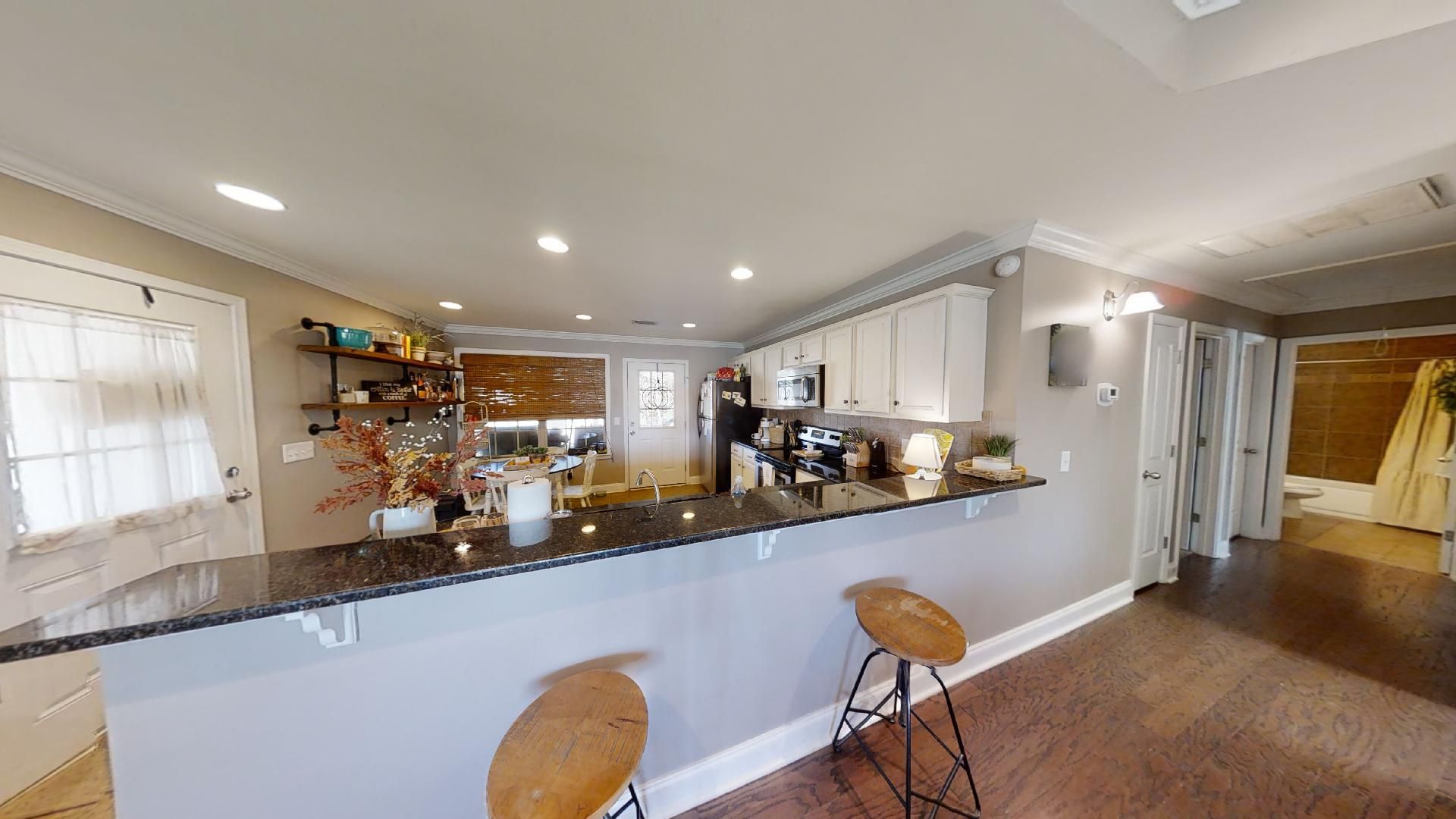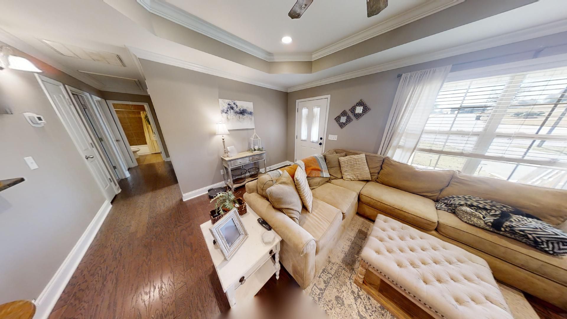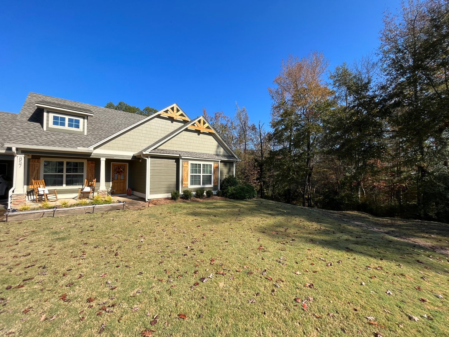 This cute craftsman cottage home in Lundy West offers 3 Bedrooms and 2 baths on a single level. Situated on a very large cut de sac lot, this home has a very large fenced in backyard. The kitchen is spacious with granite c-tops. Living room and hallway have hardwood floors. 2 guest rooms share the hall bath with tile and granite c-tops. The primary bedroom is very nice size with vaulted ceilings and walk in closet. Primary bath offers granite c-tops and tile floors. This home offers a carpet with storage closet, and a large covered back porch. Neighborhood offers a community pool.