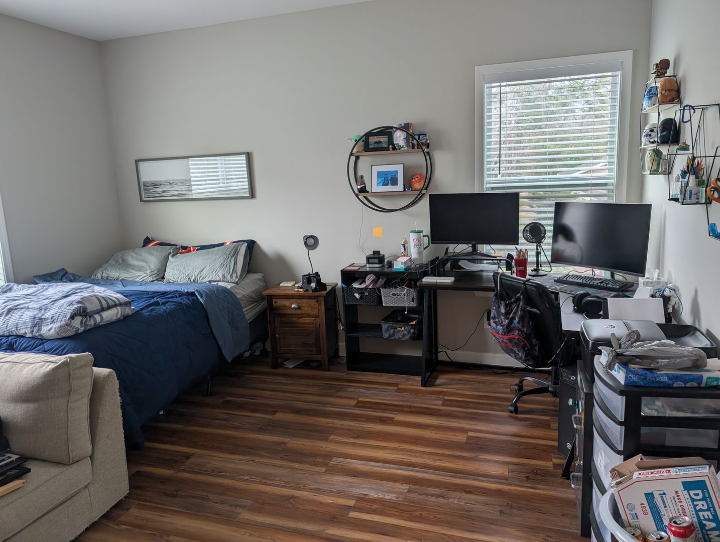 Recent construction 1750 square feet 3/3.5 townhouse duplex. 9 foot ceilings, huge closets, no carpet, all electric. On Tiger Transit line. Parking behind unit. Close to shopping and downtown. High-end finishes and appliances. Front door camera for added security. Pest control and lawn care included. LOTS of parking for you and your guests!