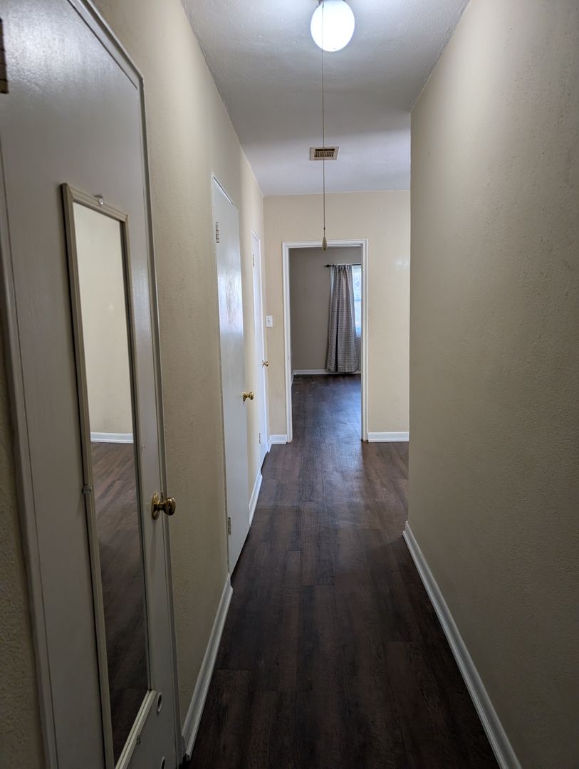 One-bedroom, one bath duplex unit with covered front porch and large yard. Lawn maintenance provided. Lots of closets/storage space. In Opelika Historic District.