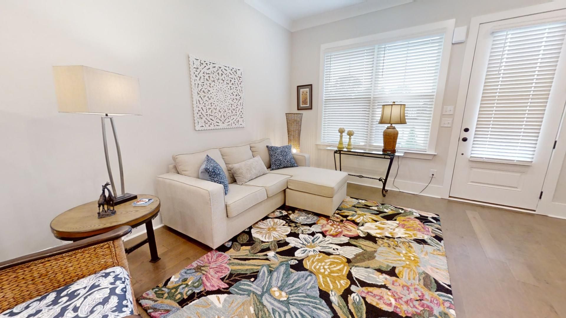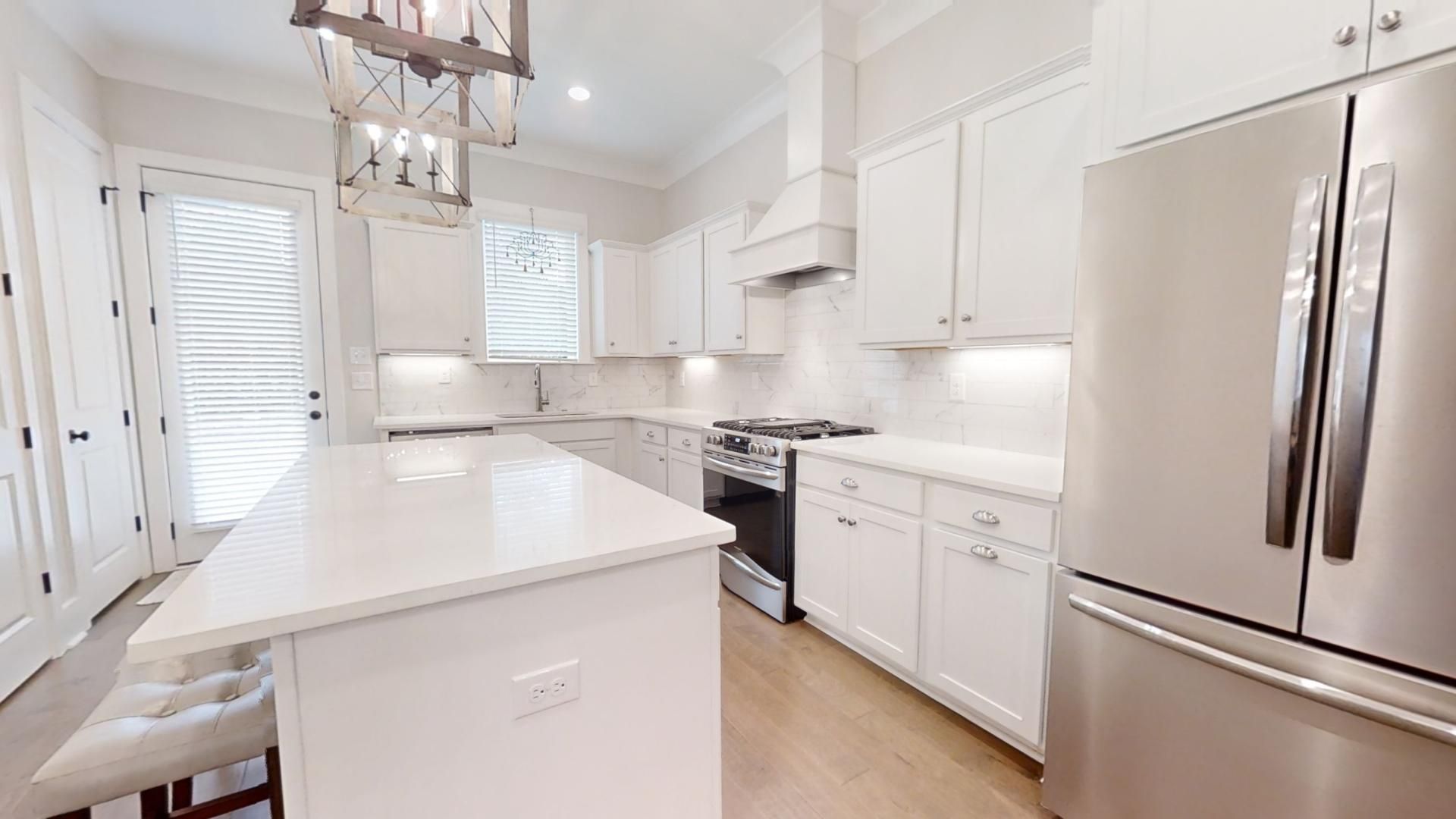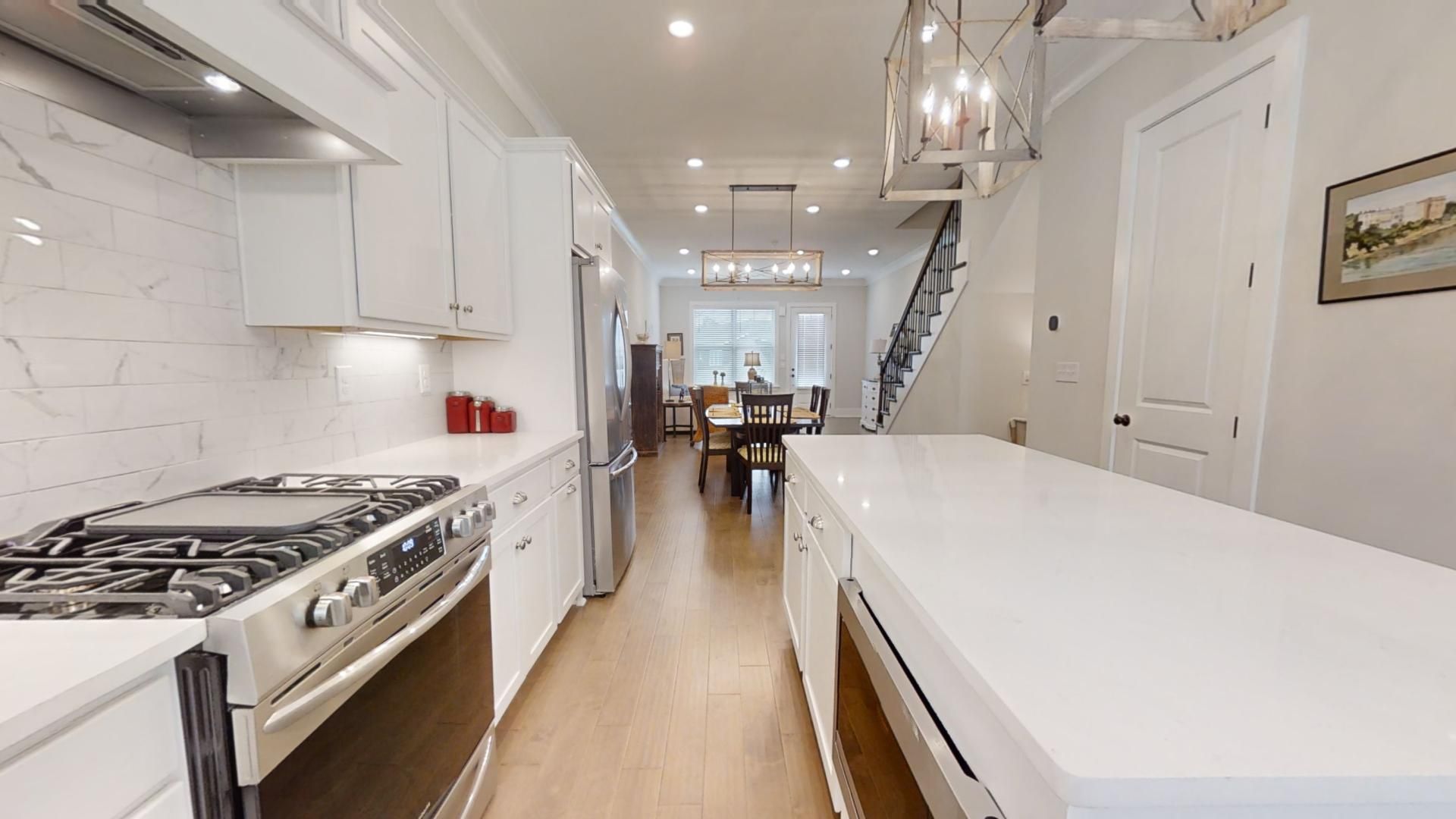 Gorgeous like new townhome off Moores Mill Road in The Townes community. Just blocks from the Ogletree/Moores Mill Shopping Centers including restaurants, shops, and Publix, as well as the Moores Mill Club. Upon entry to this 2 story townhome, the main living area opens to dining and gourmet kitchen with stainless steel appliances including a Gas Range, a large Island with quartz counter tops. Ample cabinet space, and large pantry. Half bath downstairs as well. Backdoor opens to a large green space. Upstairs offers 2 bedrooms, each with their own private bath. Laundry with washer and dryer included is located on the upstairs floor as well. The larger size bedroom upstairs has multiple closets and ensuite featuring tile floor, painted cabinet, quartz c-top, and has a beautiful tiled stand up shower. The guest bedroom has 2 closets and a beautiful bathroom with painted cabinet, quartz c-top, and tile surround tub. LVP flooring downstairs, carpet in the bedrooms.