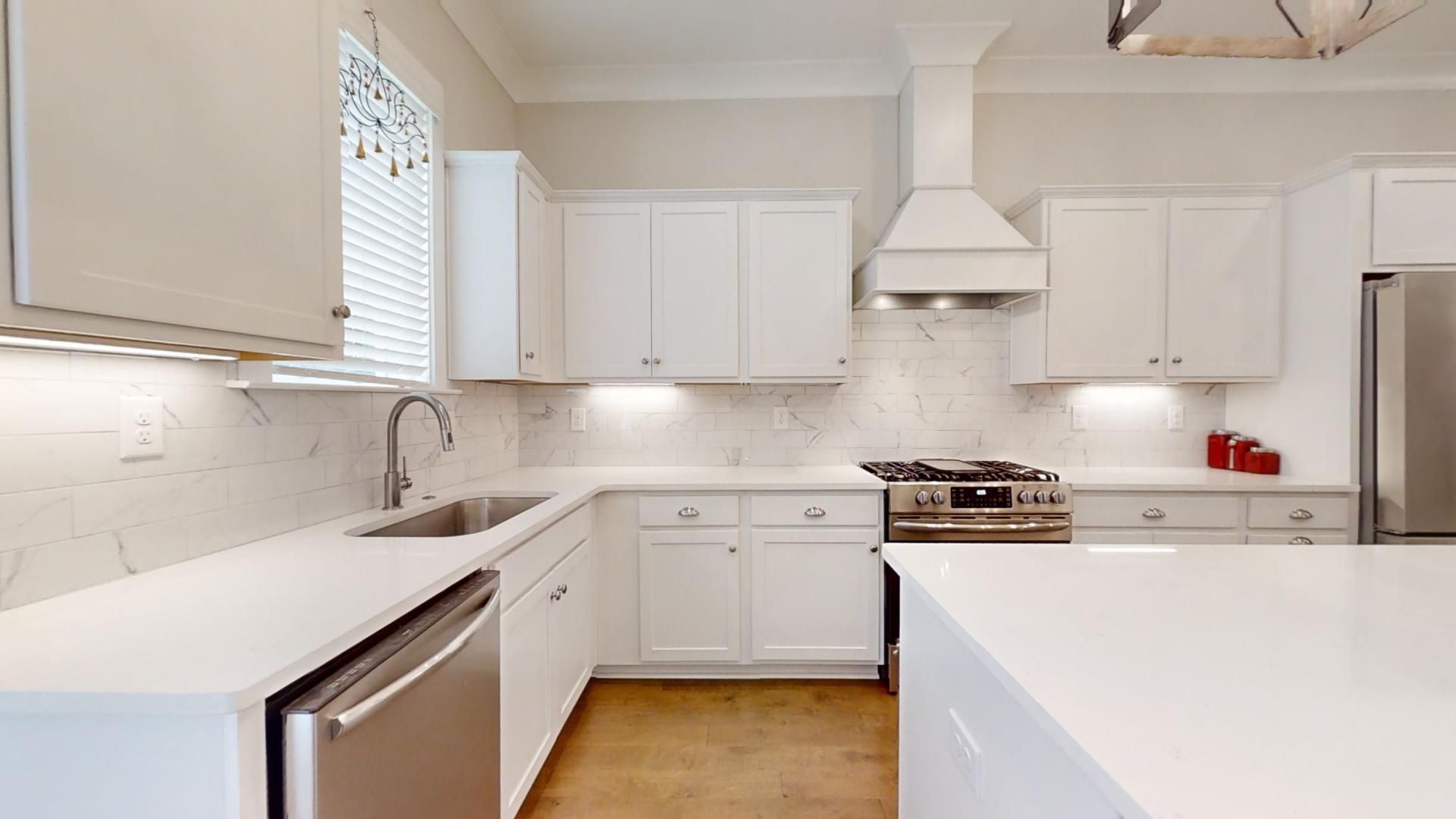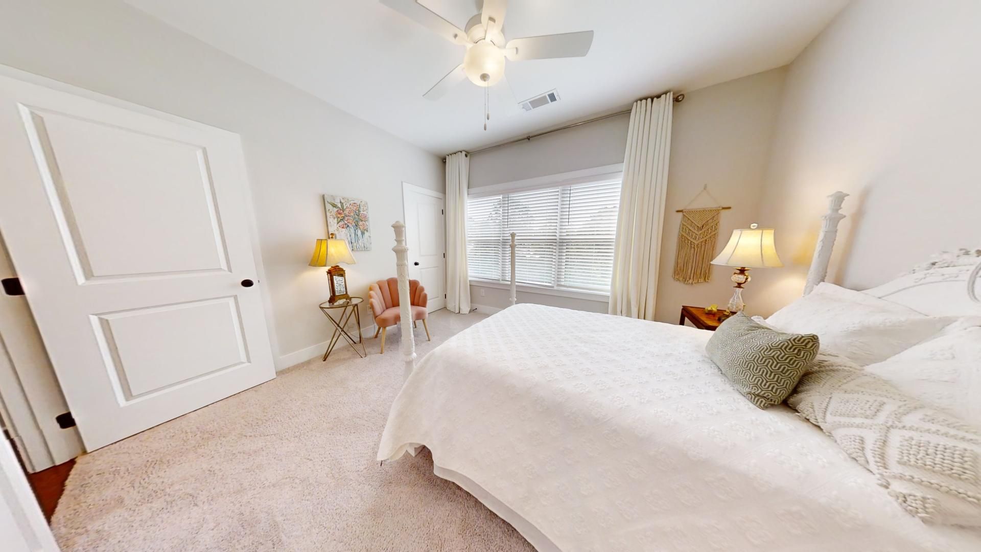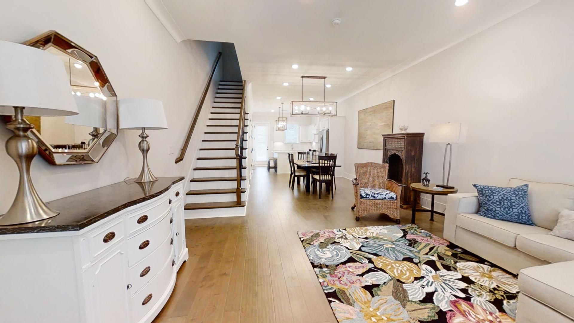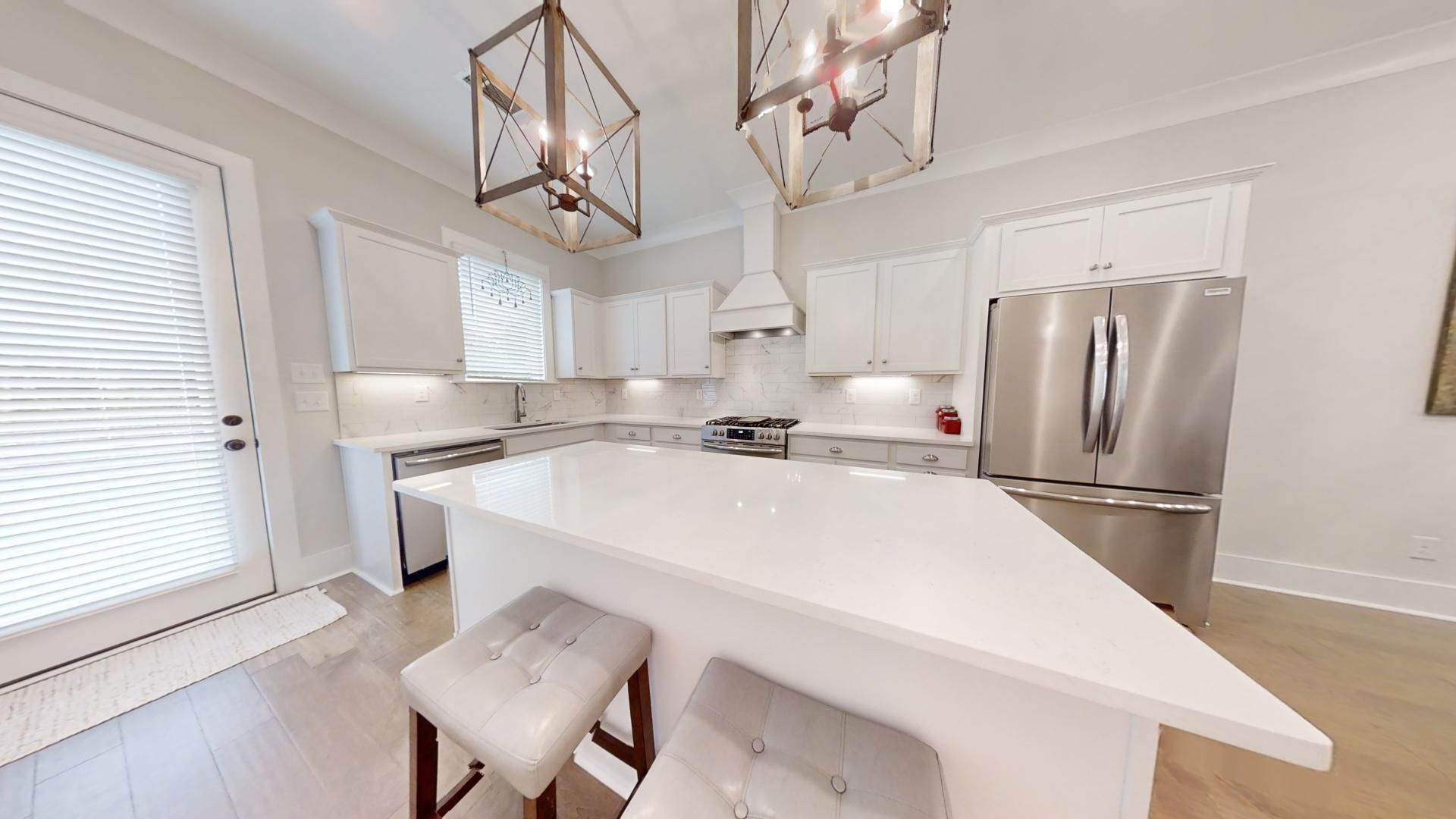 Gorgeous like new townhome off Moores Mill Road in The Townes community. Just blocks from the Ogletree/Moores Mill Shopping Centers including restaurants, shops, and Publix, as well as the Moores Mill Club. Upon entry to this 2 story townhome, the main living area opens to dining and gourmet kitchen with stainless steel appliances including a Gas Range, a large Island with quartz counter tops. Ample cabinet space, and large pantry. Half bath downstairs as well. Backdoor opens to a large green space. Upstairs offers 2 bedrooms, each with their own private bath. Laundry with washer and dryer included is located on the upstairs floor as well. The larger size bedroom upstairs has multiple closets and ensuite featuring tile floor, painted cabinet, quartz c-top, and has a beautiful tiled stand up shower. The guest bedroom has 2 closets and a beautiful bathroom with painted cabinet, quartz c-top, and tile surround tub. LVP flooring downstairs, carpet in the bedrooms.