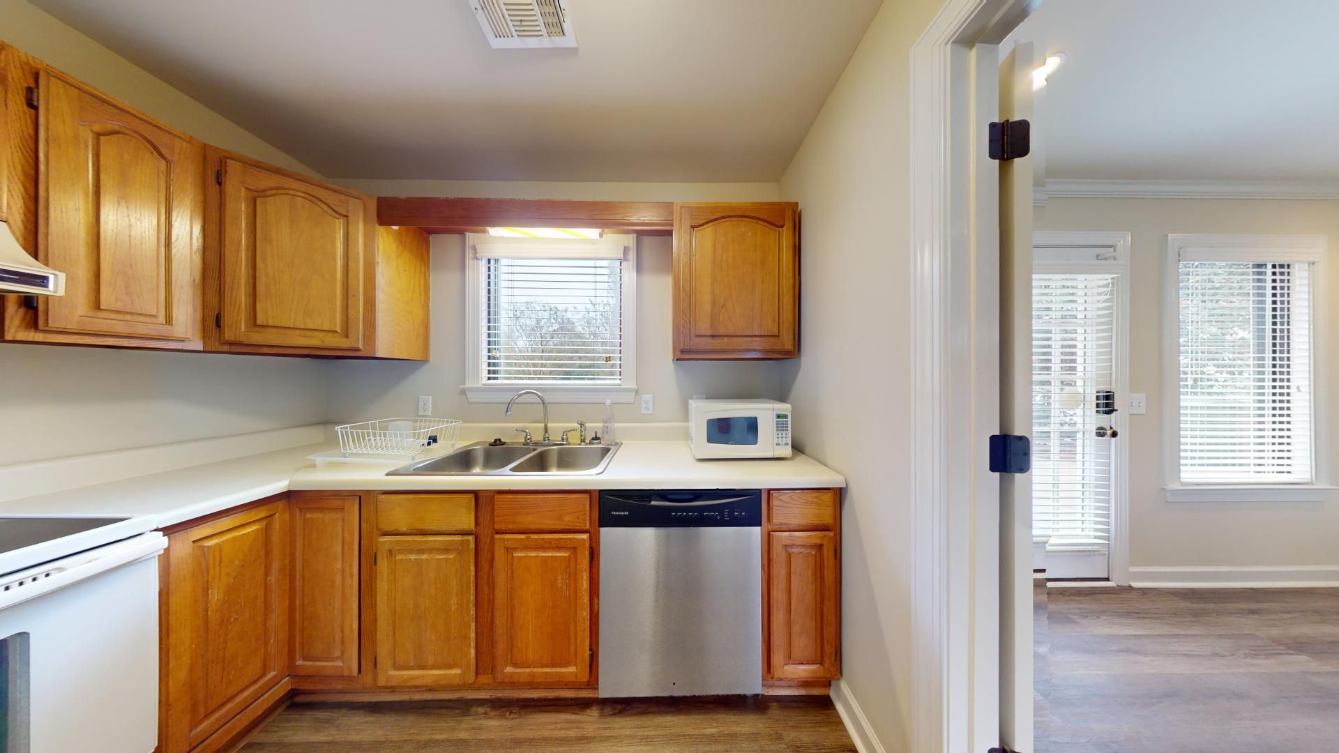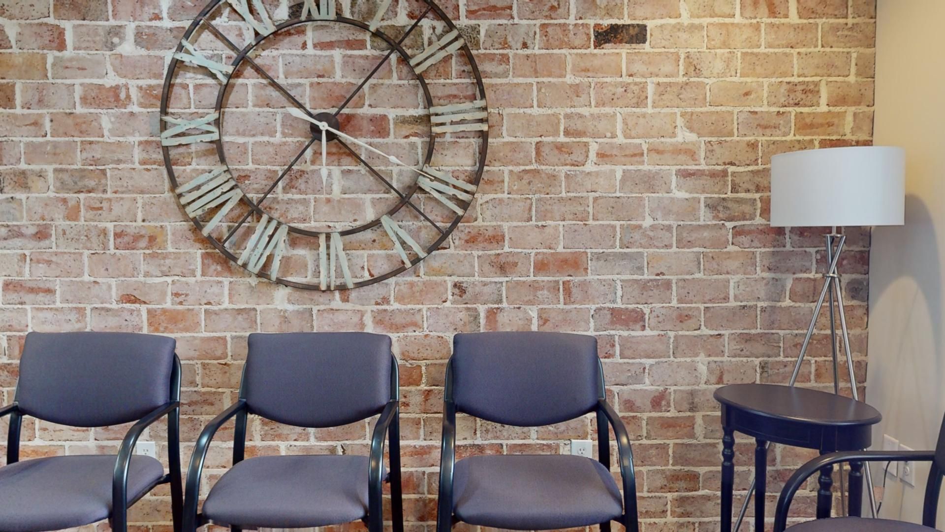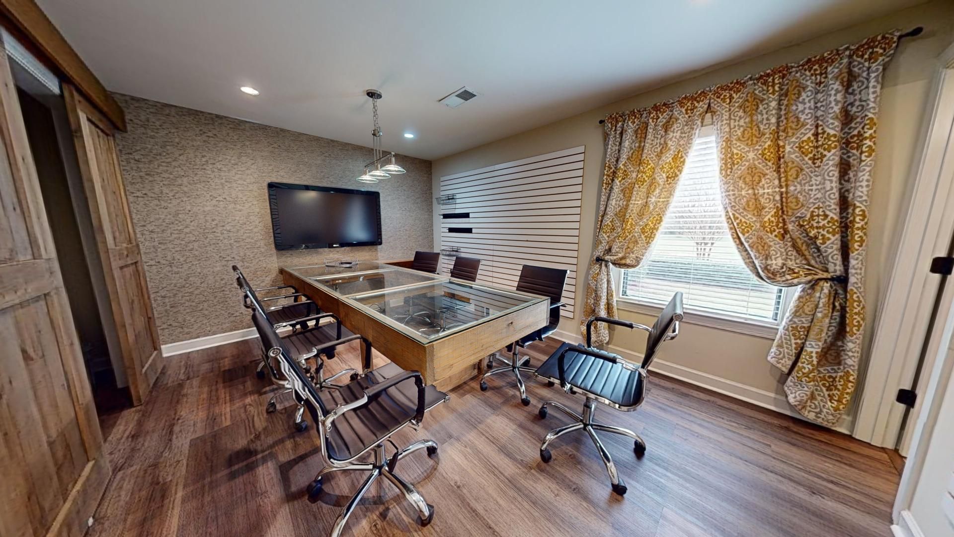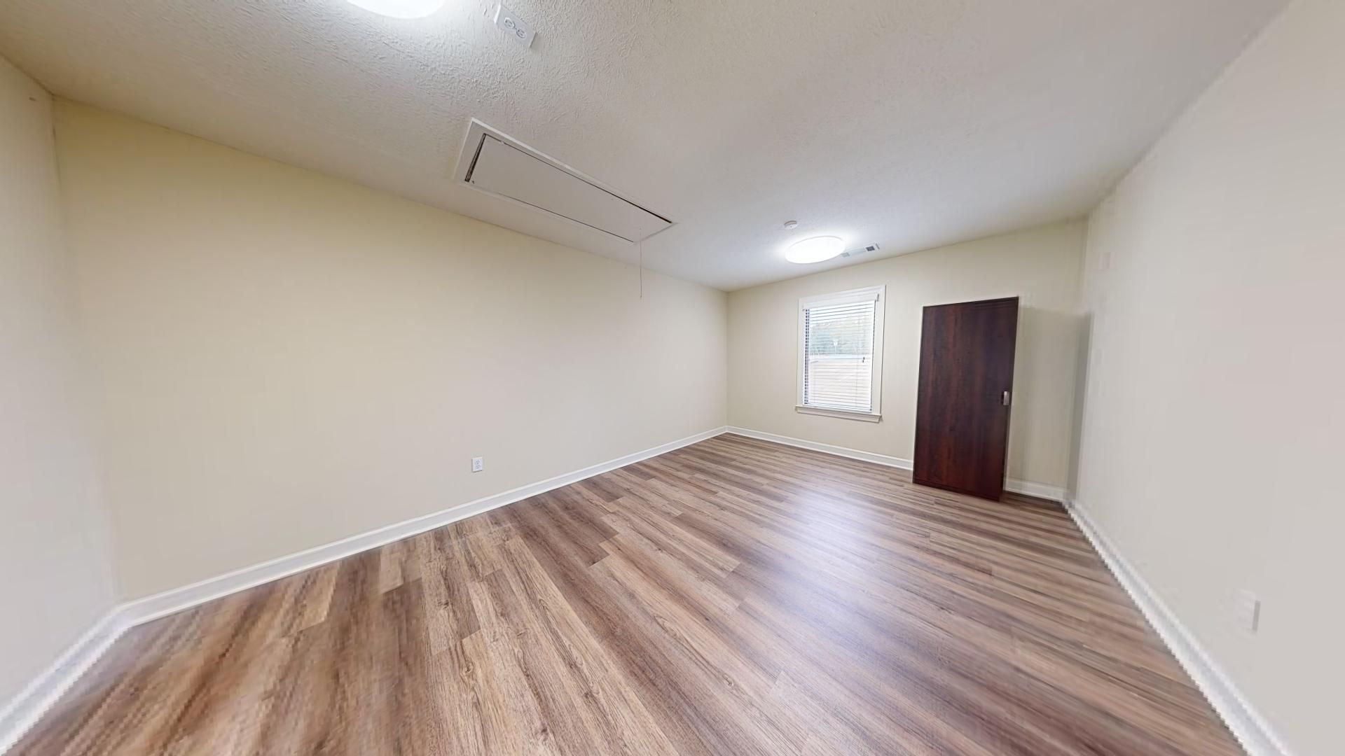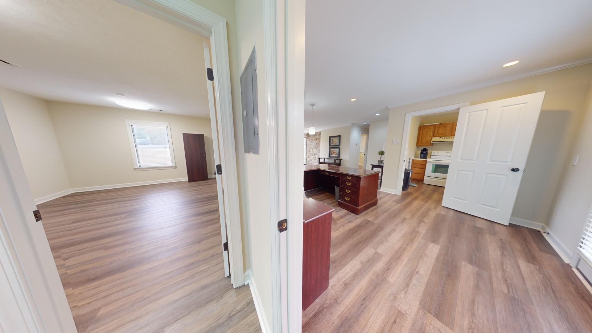 This one level office building has great visibility on one of the most used roads in Lee County. Just a few blocks from Tiger Town on Frederick Rd, this property offers nicely finished space with plenty of parking. Upon entry there is a large reception area that could have many different uses. One wall has a stone finish, and another with a brick finish. One side of the main reception room has a large office and storage closet with fridge. The other side has a small kitchenette area, then a hallway where there are 2 offices rooms and a another office currently being used as a conference room. This space has 2 bathrooms (one of which is a full bath). Out the back door is a nice patio area with a sidewalk leading to a very large parking lot. This property has many different uses to suit almost any kind of business needing office space. Lawn care included.