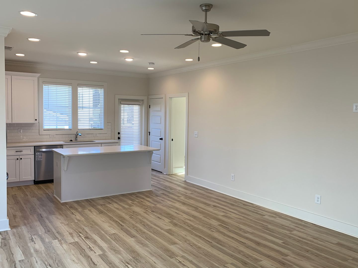 One Level Open Concept Home. Entryway leads to a large dining and living room. The kitchen includes quartz countertops, stainless appliances & a large center island. Next to the kitchen pantry is the primary bedroom with attached bath and walk-in closet is located off of the bathroom. 2 Additional bedrooms and full guest bathroom complete the home. LVP flooring throughout. All Appliances included.