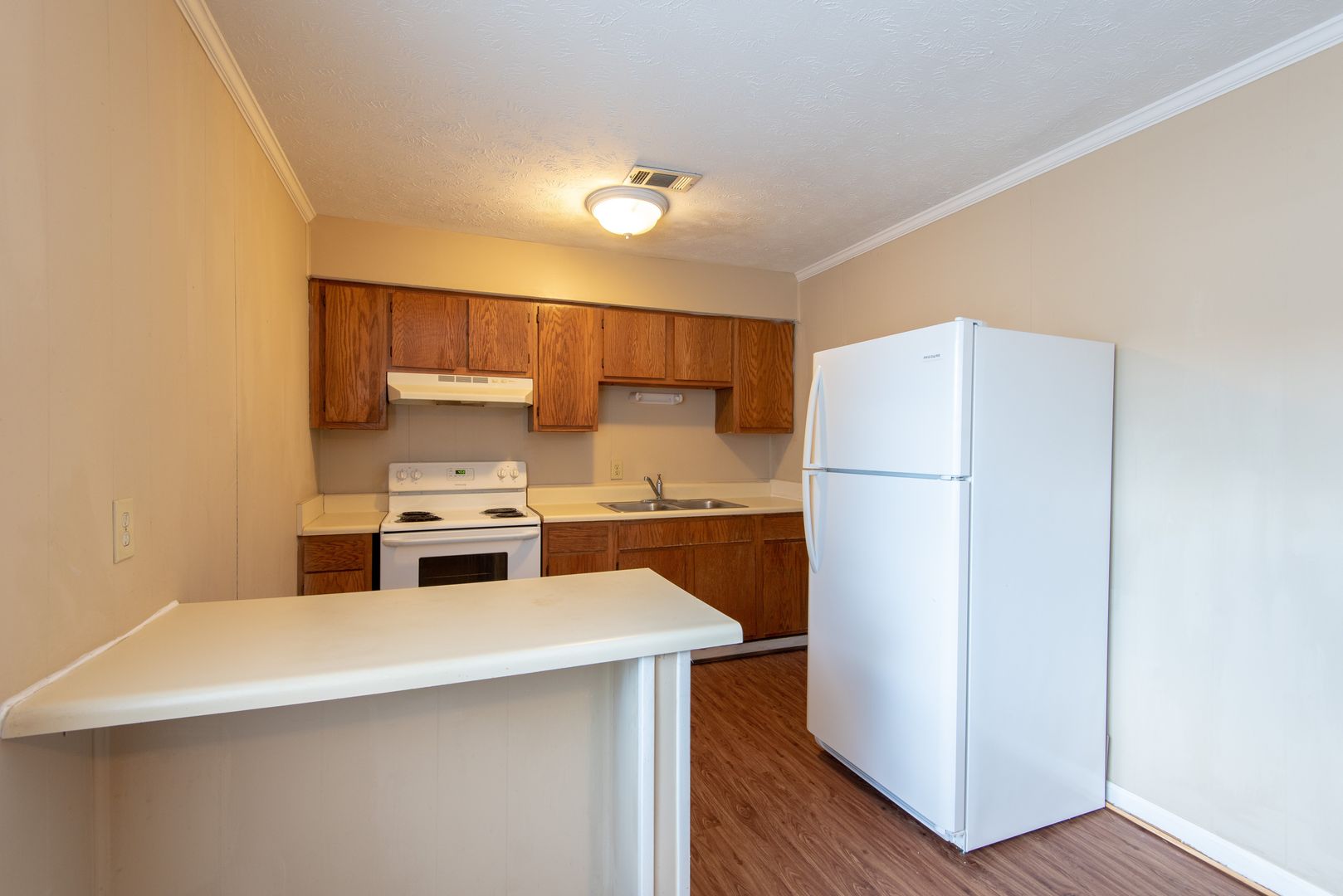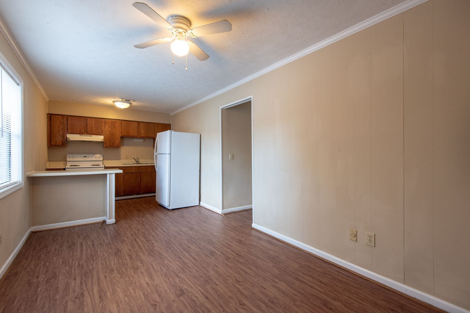 Perfect for students! Efficient ground level apartment just one block from campus. 2 Bedrooms with private baths. Kitchen with breakfast bar open to living room.